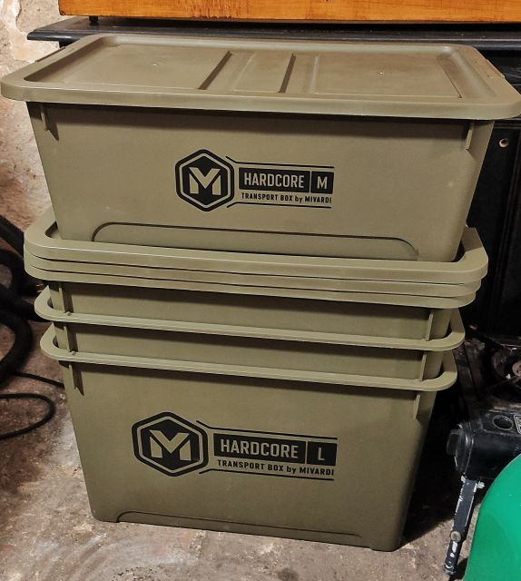 Skrzynki Mivardi - w końcu zanęty, pellety i różne akcesoria w piwnicy znalazły bezpieczne miejsce na regale, ale jest to również super sprawa jeśli chodzi o transport czy zabezpieczenie sprzętu/towaru przed wilgocią (np. odzieży) w samochodzie.