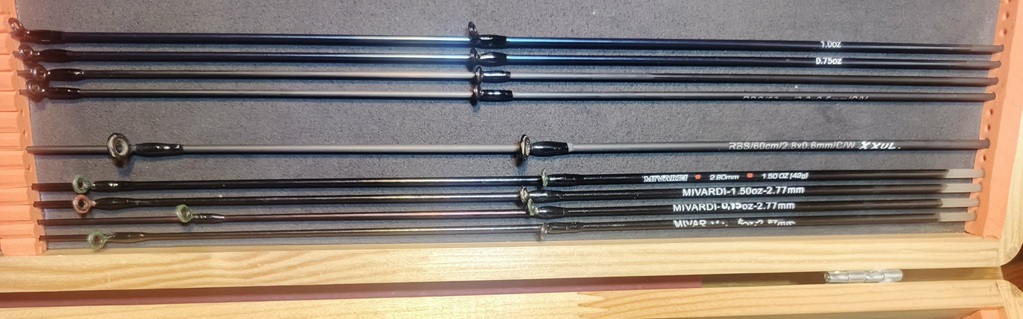 Szczytówki wymagały zmiany przelotek. Szklane topy wklejone na tulejkę carbonową. Wyszły mi fajne, czułe szczytóweczki około 0.25 i 0.5 OZ. Myślę że się sprawdzą...