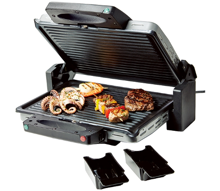 Spodnia płyta ustawiona tak, że nadmiar soków pięknie odpływa (trzeba podstawiać coś "pod dziubek"). Szybko i równomiernie się nagrzewa. Pięknie trzyma temperaturę. Stekusie wychodzą pyszne ;) Ryby, warzywa, tortille... aż się głodny zrobiłem ;)