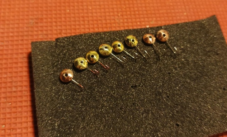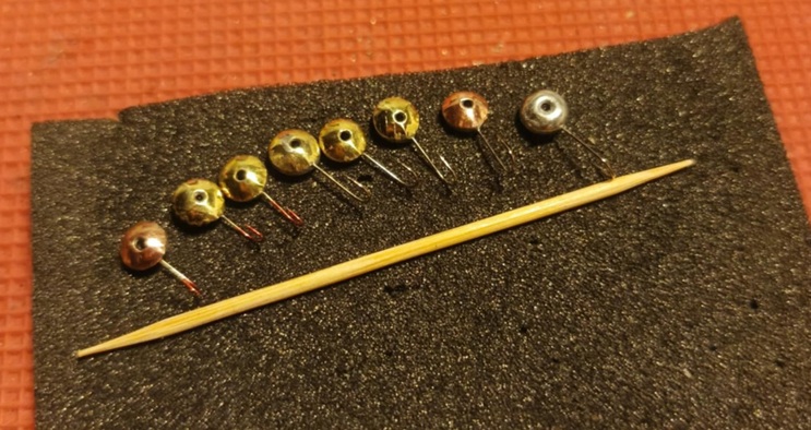 Tak wyszło (na górze ostatniej fotki są leciwe mormyszki, dolne rzędy na fotce to "nowa" produkcja - część malowana lakierami fluo):