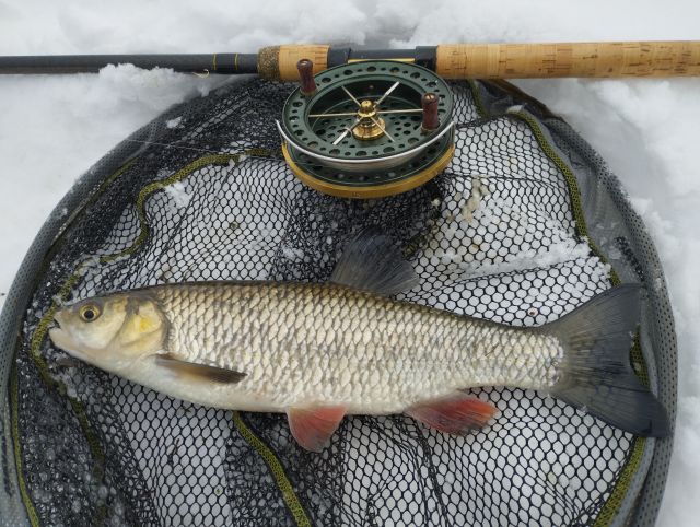 Było kilka brań lecz do podbieraka wpadł tylko jeden kleń: